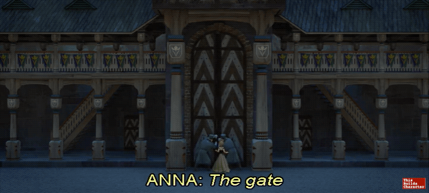 When Elsa finally replies to Anna, the audience doesn’t get to see her, keeping the audience in line with Anna’s perspective. We are denied a look at Elsa the same way Anna is.