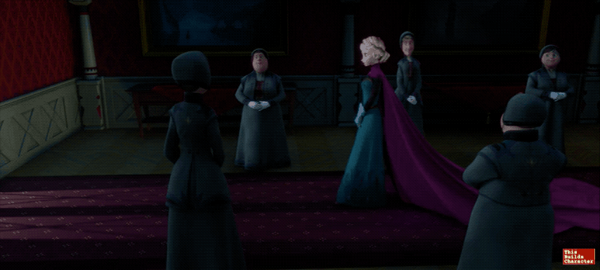 But she commands the opening of more doors. She’s not going to do it herself, but she’s going to allow it to happen. There’s a disconnect between the new openness of the palace and Elsa’s desire to continue to keep herself at a remove from it.