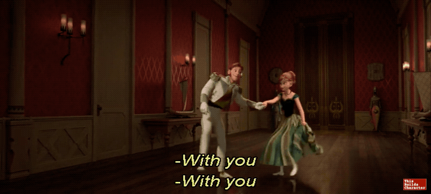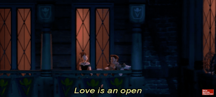 Since the text of the song is all about love being an open door, and Anna feeling like she’s falling in love with Prince Hans, their musical number takes them through many doors throughout the castle and its grounds.