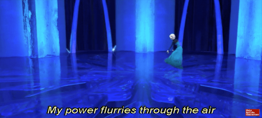 Again, the camera soars up high on what’s supposed to be a positive, strong declaration of emotion. Elsa is taking a stand. She’s using her power to claim a place for herself.
