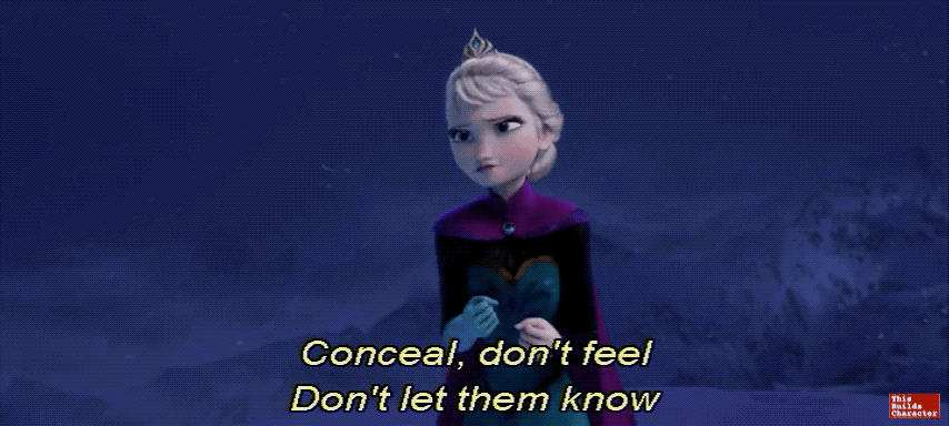 Again, Elsa feels that there’s something distinctly wrong with her; that her very existence is somehow a moral failing. She’s been raised to believe that she is flawed, and that the only way to deal with that is to let people believe she’s something that she’s not.