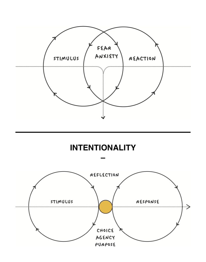 Responding rather than reacting. Choosing to kick rather than twitching your leg when the doctor’s hammer strikes.