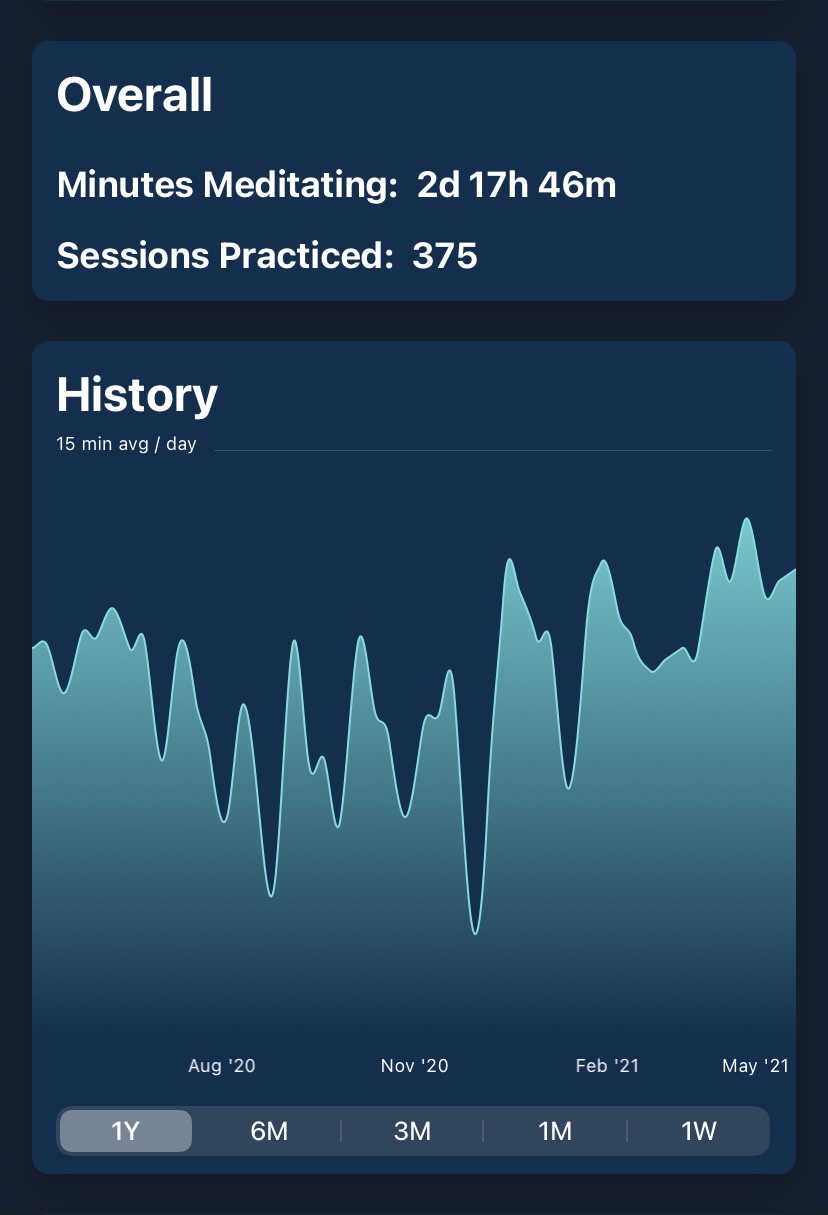Now look at a full year of keeping track of my meditation: