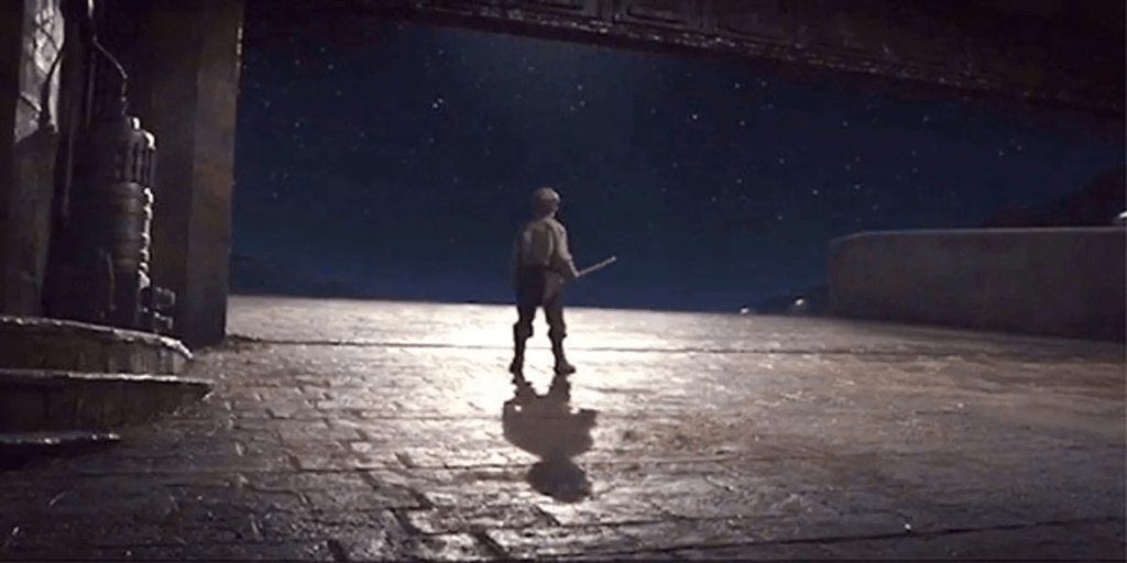 Going back to The Last Jedi, I love the ending of the film so much. A stable boy seen earlier in the film shows a small ability to use the force, and looks to the night sky, holding a broom as an imagined sword.